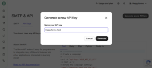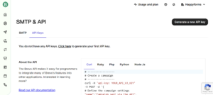 Step 2: Navigate to SMTP & API > API Keys. Then generate a new key if you don’t have one.