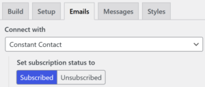 Step 3: Go to Emails > Connect with Constant Contact in the Happyforms Contact Form. Additionally, you can indicate whether the user will be subscribed. Do not forget to click “Update”.