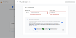 - Create a new property by adding your website’s details, such as URL and time zone.